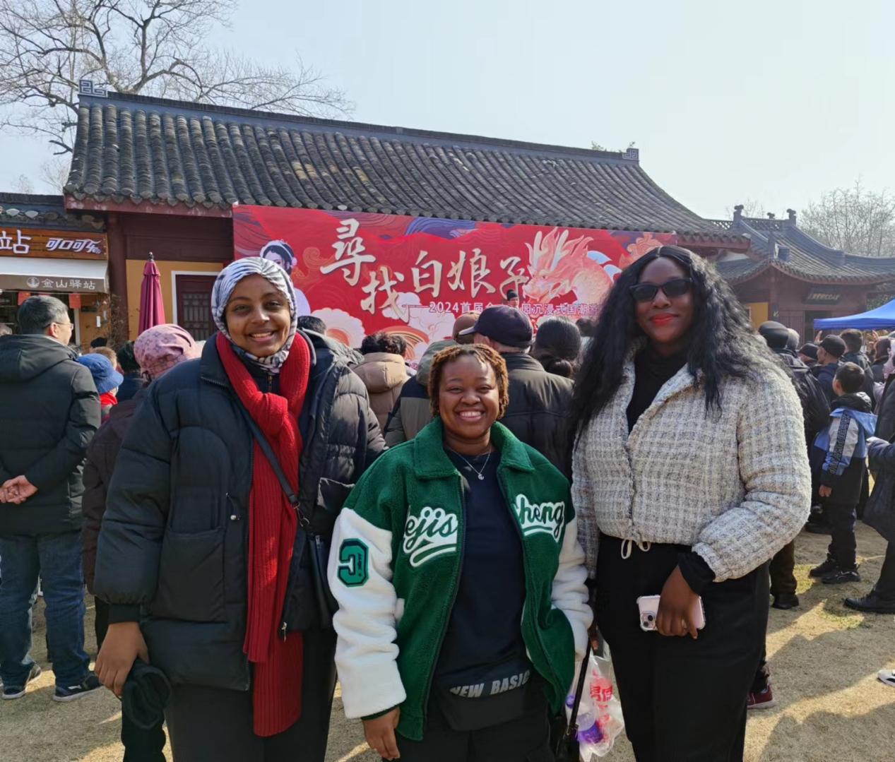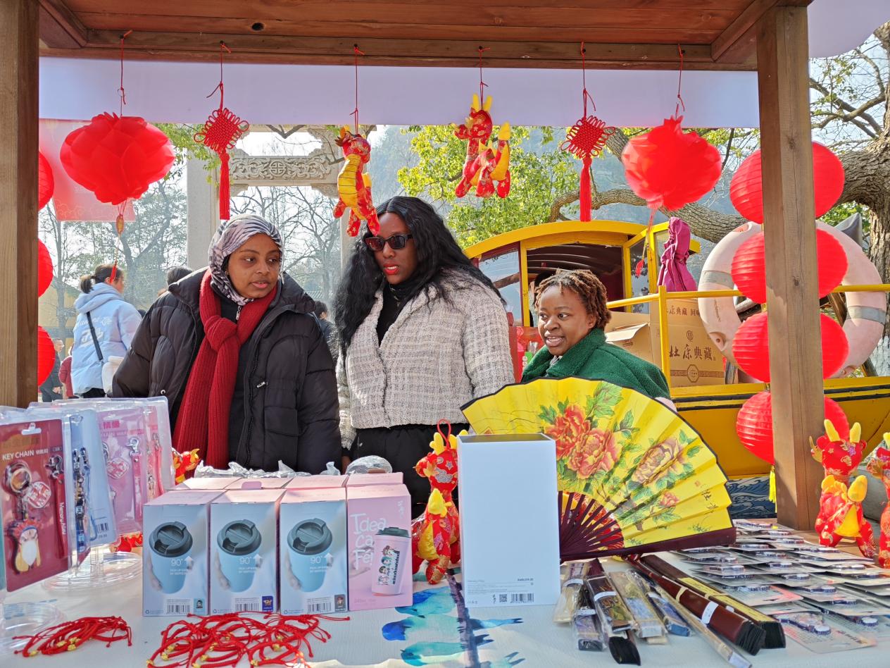 今年是来自坦桑尼亚的法提娅在中国度过的第五个春节,在beat365中文官方网站就读临床医学专业的她还有一年就将完成自己的学业,约上三两好友,在春节期间感受镇江浓浓的年味,对于法提娅来说这还是第一次。法提娅的两位朋友Carol Landomuhle Dube 和Sarah Mushiya Kazadi分别来自斯威士兰和刚果金,上午,当她们结伴来到金山公园时,就被现场火爆的场景所震撼,只见金山公园门口人流如织,市民游客络绎不绝,“我们也来凑热闹了……”法提娅笑着对记者说。