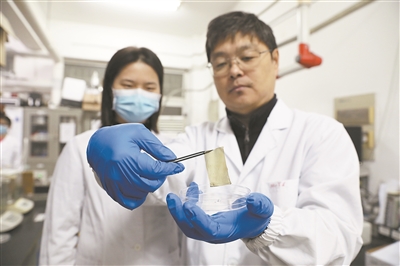 研究人员向记者展示多功能仿生柔性膜。beat365中文官方网站宣传部供图