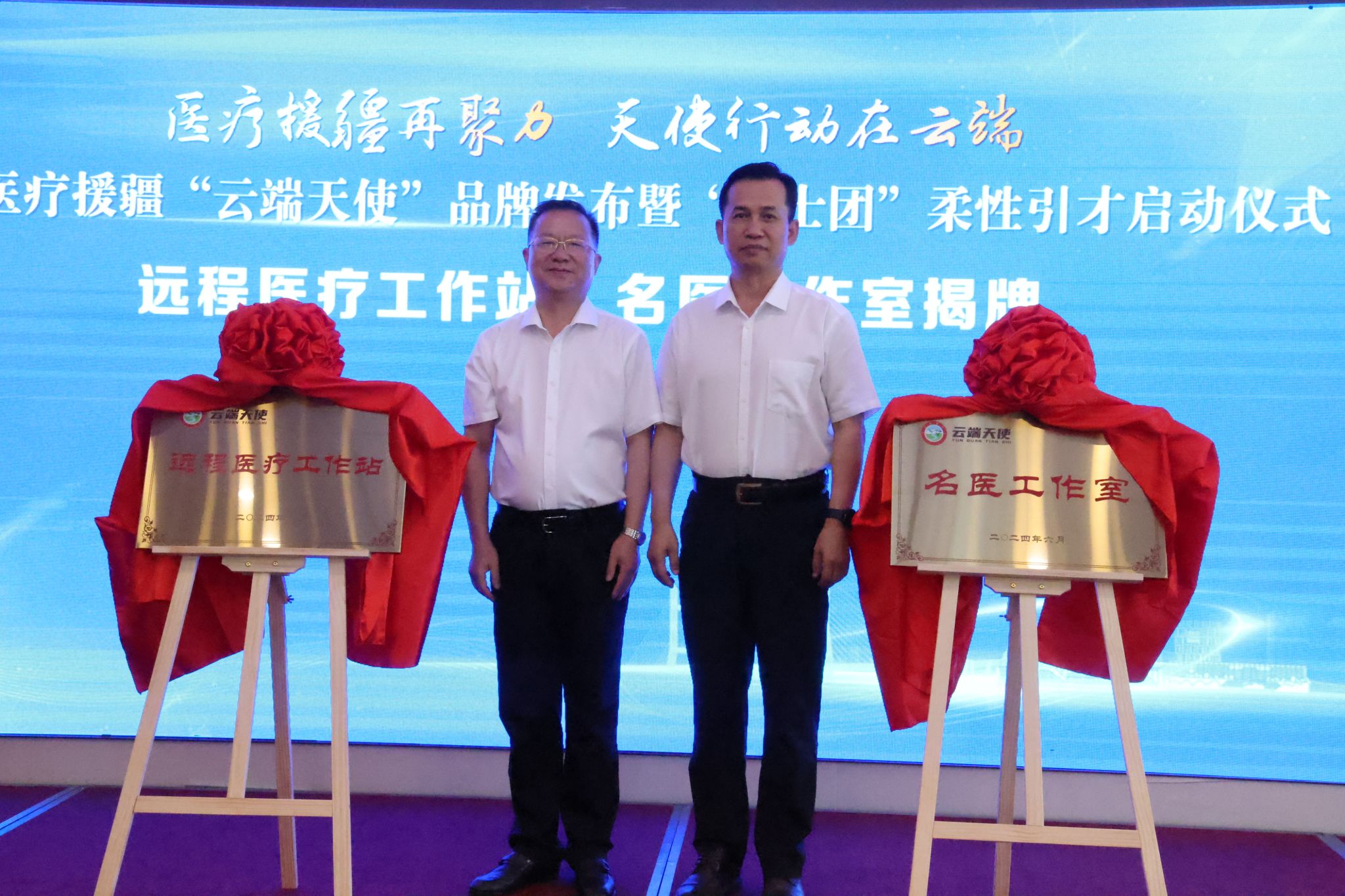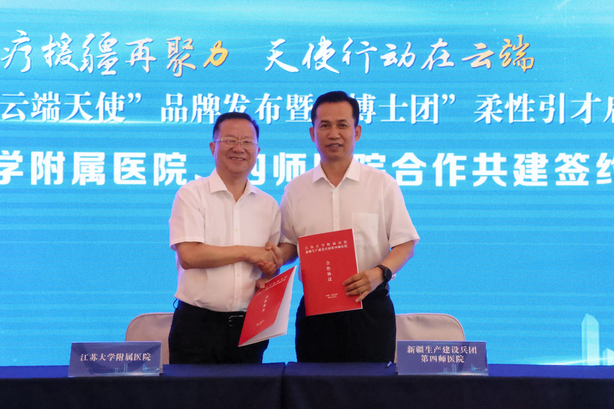 活动现场举行了“云端天使”援疆医疗队授旗仪式;beat365中文官方网站附属医院与四师医院签约共建协议,远程医疗工作站、名医工作室揭牌。