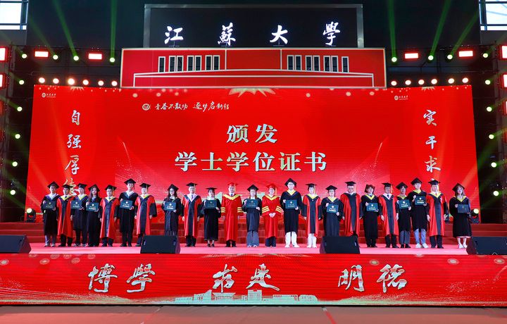 典礼现场,师生代表带来情景朗诵《一路生花》、歌舞《祝我们前程似锦》等精彩节目,深情回望江大时光与青春岁月。典礼尾声,全场起立,齐声合唱校歌《百年辉煌向未来》,两只象征美好的“金凤凰”于场馆上空盘旋,将气氛推向高潮。