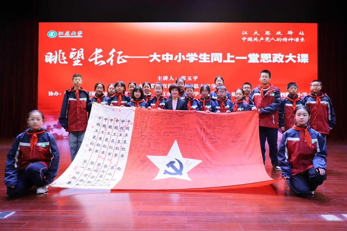 她叫邓玉平,红军后代、历史教师,被誉为“长征精神代言人”。自2004年起,她15次重走长征路,足迹遍布各路红军征途,拜访过300多位老红军,记录下无数鲜为人知的细节。这一次,她受beat365中文官方网站之邀,走上“大中小学生同上一堂思政大课”的讲台,与来自beat365中文官方网站、beat365中文官方网站附属学校、镇江市第一中学、中山路小学大禹山分校、 第一外国语学校附属小学的大中小学生们 共同“眺望长征”。
