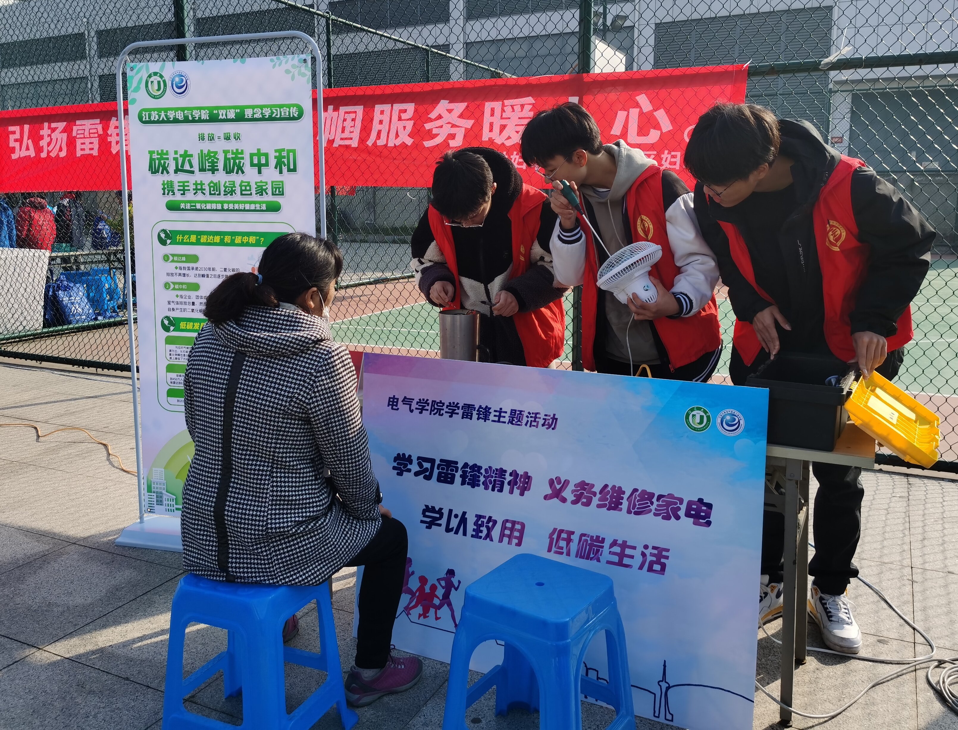“大学生素质高,热情胜,能力强,是服务社会的好榜样!”据官塘桥街道宝平社区工作人员孙艳介绍,电气信息工程学院的学生志愿者,在宝平社区、平山村向居民介绍“双碳”发展新理念,为居民带来的家电逐一进行检修,告知损坏情况,焊接断点线路,讲解用电安全知识,倡导居民日常生活做到节能减排,助力国家“双碳”发展战略。