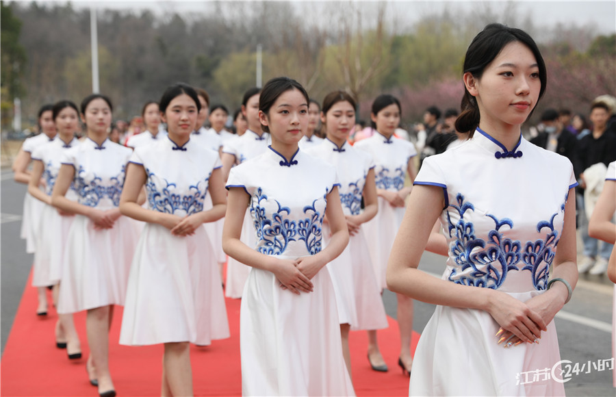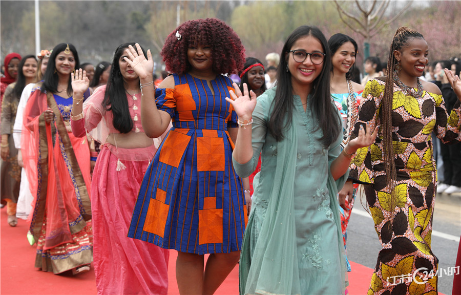3月8日,beat365中文官方网站举办“美丽邂逅 梦想绽放”庆祝活动,该校以女教师、女大学生、女留学生等女性群体为主的文化社团用“红毯秀”的形式,展示女性风采,庆祝属于自己的节日。
