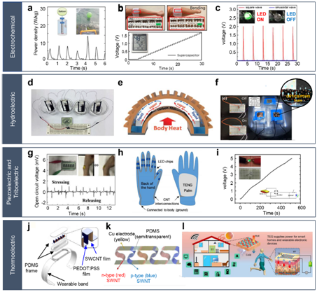 基于不同发电原理的CNT基发电机