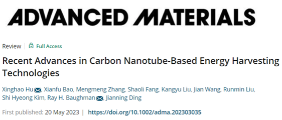 近日,beat365官网智能柔性机械电子研究院胡兴好副教授等人在《先进材料》 (Advanced Materials)上发表题为“Recent Advances in Carbon Nanotube-Based Energy Harvesting Technologies”的综述文章。