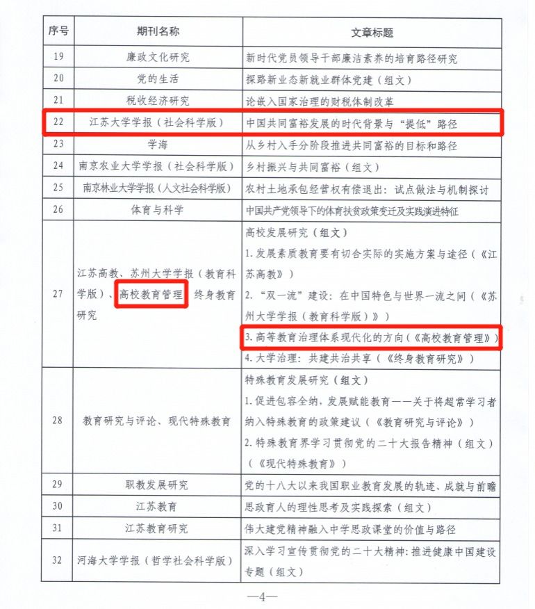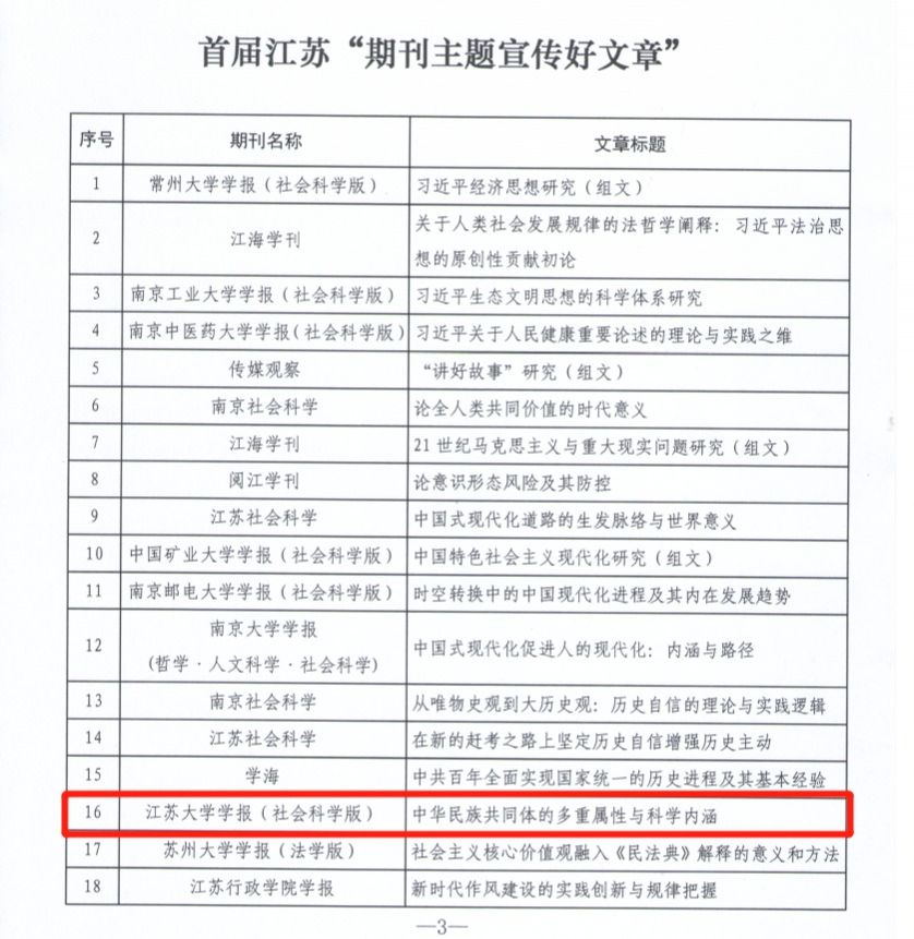 近日,江苏省新闻出版局主办、省期刊协会承办首届江苏“期刊主题宣传好文章”推荐活动,47篇(组)文章入选首届江苏“期刊主题宣传好文章”。其中,《beat365中文官方网站学报(社会科学版)》刊发的《中华民族共同体的多重属性与科学内涵》《中国共同富裕发展的时代背景与“提低”路径》,《高校教育管理》刊发的《高等教育治理体系现代化的方向》等三篇文章成功入选。