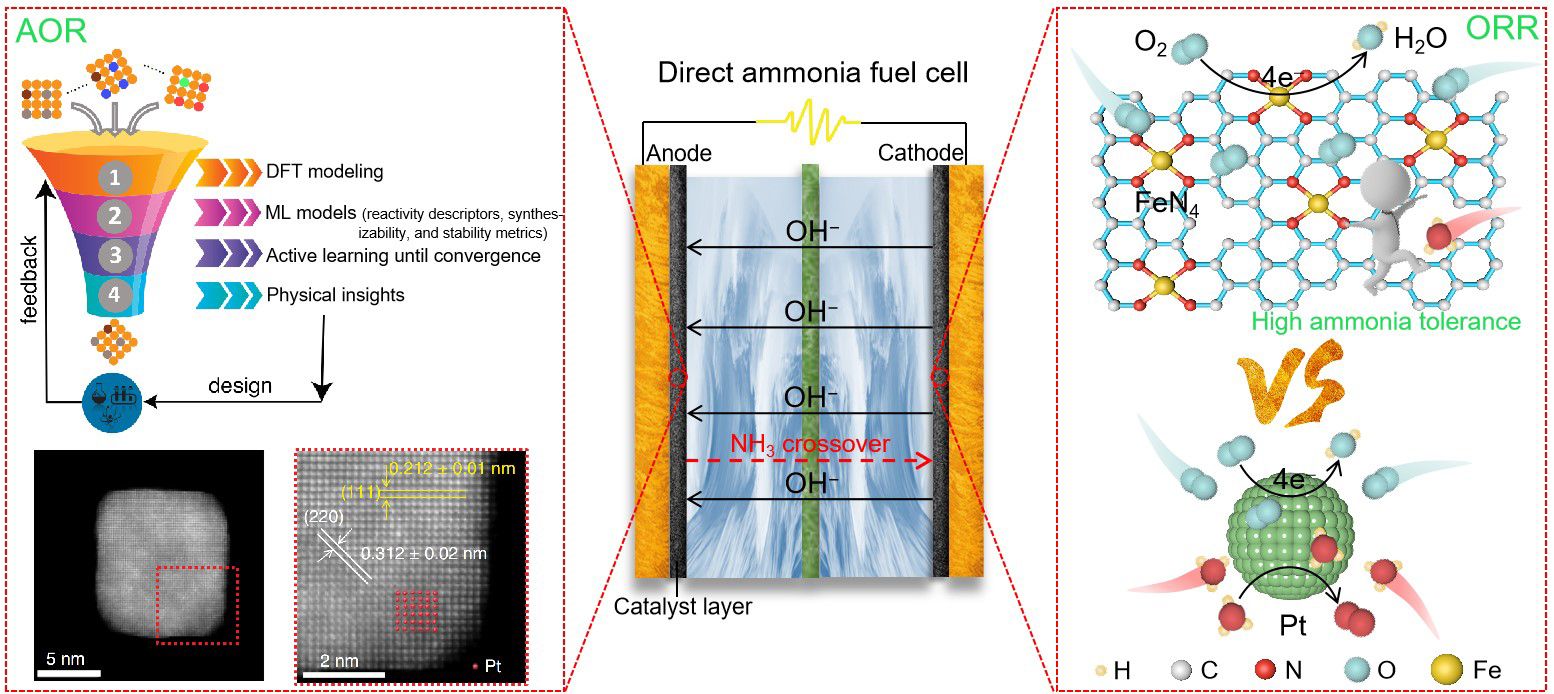 杨娟教授、李毅博士,美国佛吉尼亚理工大学辛洪良教授、纽约州立大学布法罗分校武刚教授对直接氨燃料电池阳极氨氧化电催化剂的合作研究成果Interpretable design of Ir-free trimetallic electrocatalysts for ammonia oxidation with graph neutral networks发表在Nature Communications上。
