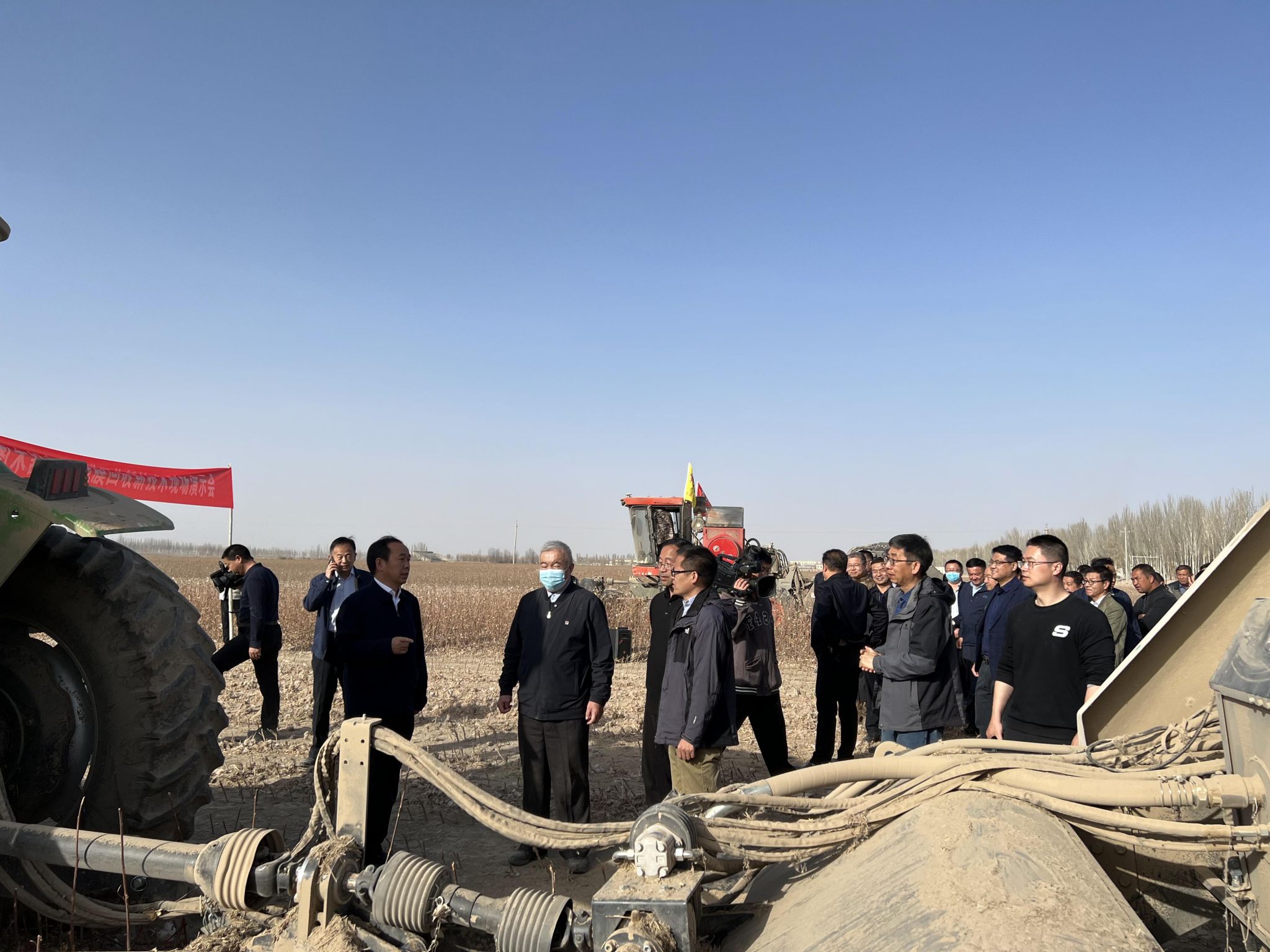 陈学庚院士、新疆生产建设兵团第三师图木舒克市党委书记谢映周出席演示会,第三师副师长、图木舒克市副市长张勇到场交流,农三师8个团部主要领导参加现场验收会和研讨会。
