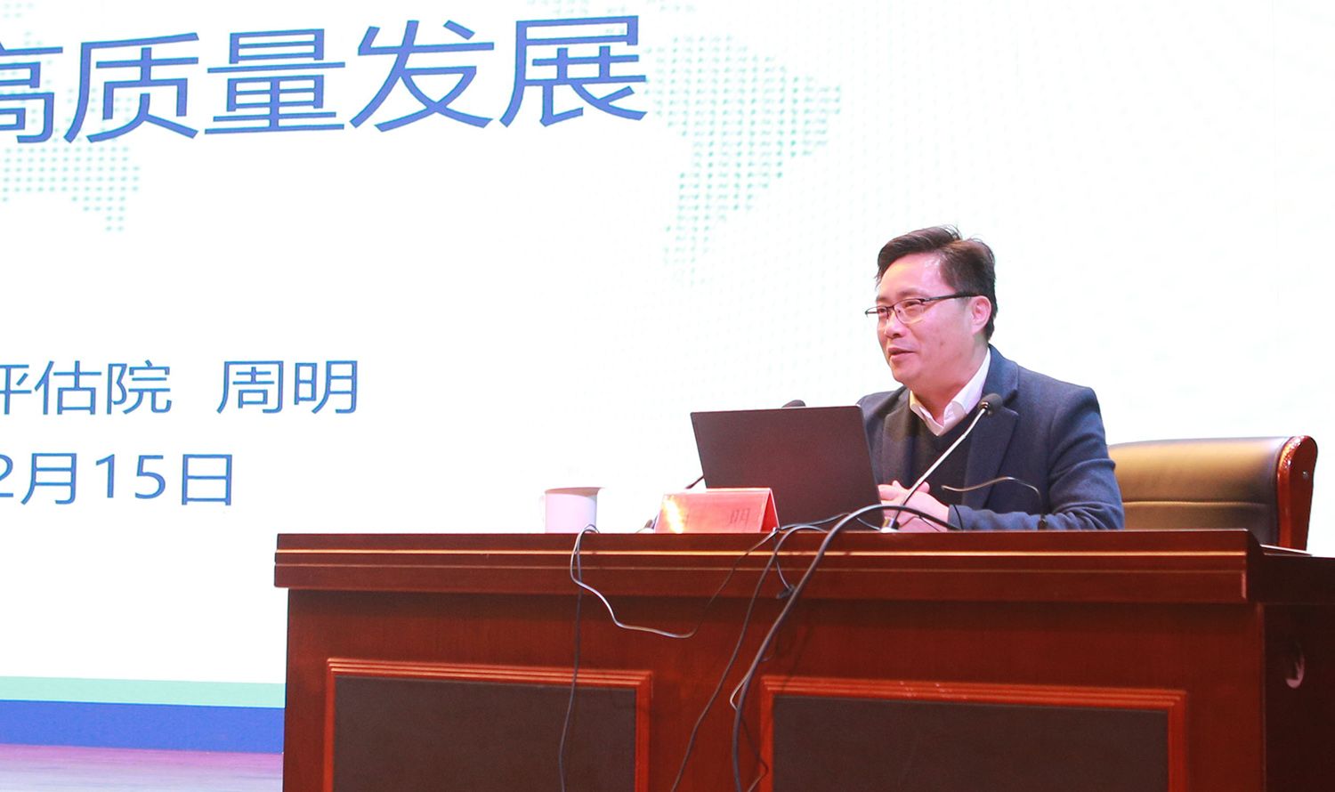 周明作了题为《聚焦质量文化建设 全力推动高质量发展》的专家报告。他从“未来已来:高等教育发展呈现新格局”“唯变不变:质量保障创新驱动高质量发展”“行则将至:着力落实好审核评估重点任务”三方面展开论述,指出我国高等教育进入高质量发展阶段、高等教育发展的外部环境发生深刻变化、面向2035的高等教育发展六大方向。他表示,高等教育评估理念、程序、目的、主体、内容都发生了重大变化,评估新范式全力驱动高质量发展。周明强调,做好新一轮本科教育教学审核评估,要准确理解国家方案的核心要义和特点,吃透评估指标体系,做好“五个结合”,聚焦突出高校立德树人的根本任务、把立德树人成效作为评价高校一切工作的根本标准 “两个根本”,把准质量文化建设评估导向;要着力落细落实相关重点工作,明晰审核评估工作程序,选择合适的评估指标,选取合理的常模参照,规范准备评估材料,客观准备“3+3”报告等常态数据资源。