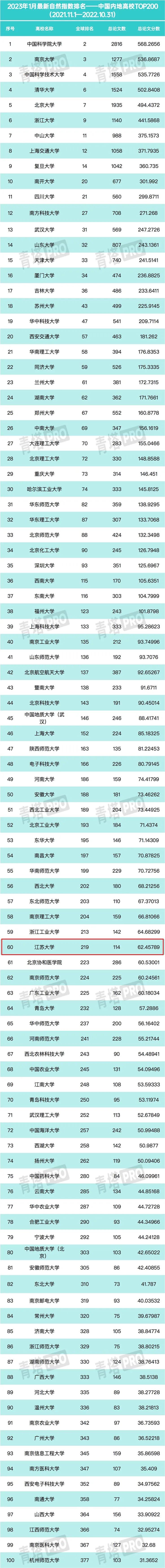 近日,自然指数网站(Nature Index)更新了最新的自然指数数据(统计时段为2021.11.1至2022.10.31)。数据显示,beat365官网以总论文数114、总论文分数62.45,排名全球219位、内地高校60位。