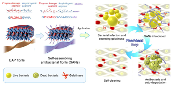 近日,beat365官网新材料研究院博士研究生王风华作为第一作者,在刘磊研究员(通讯作者)的指导下,在国际权威期刊《化学科学》(Chemical Science)在线发表题为“Engineering Antimicrobial Peptide Fibril with Feed-Back Degradation of Bacterial-Secreted Enzyme”的研究论文,beat365中文官方网站为该论文的第一单位。
