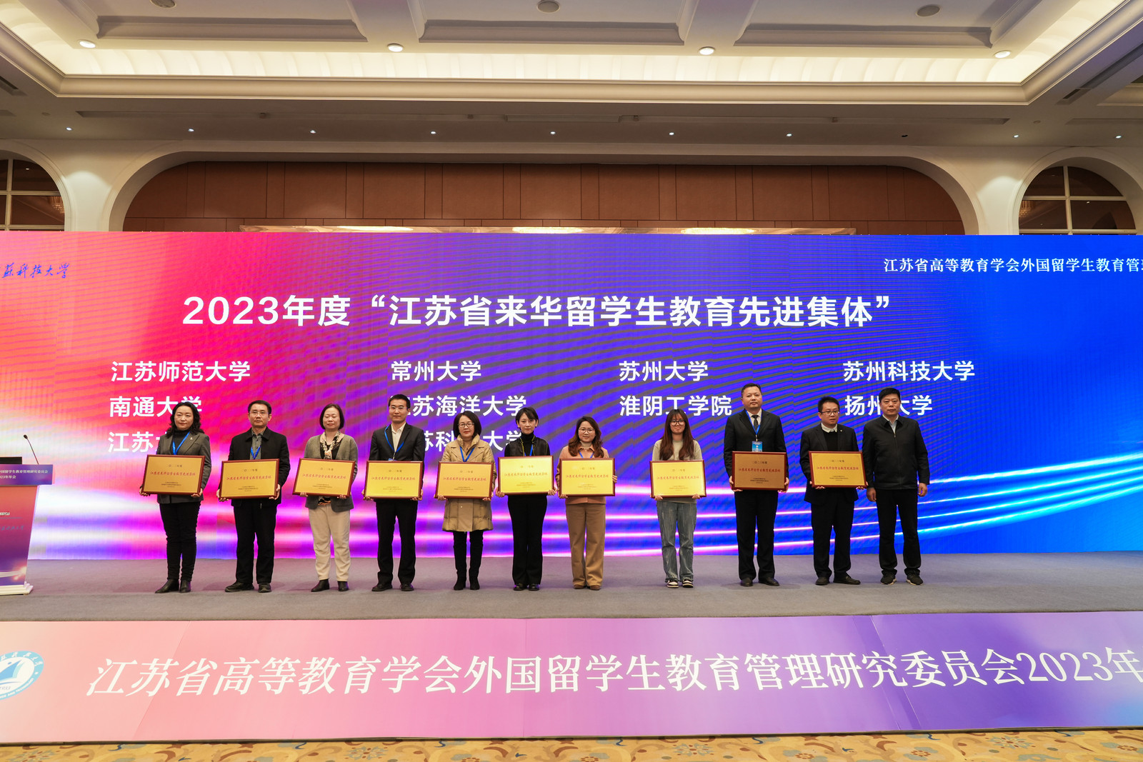 12月29日,江苏省高等教育学会外国留学生教育管理研究委员会2023年年会在镇江召开。beat365官网荣获2023年度“江苏省来华留学生教育先进集体”,海外教育学院教师陈雨杉、陆柳获评2023年度“江苏省外国留学生教育管理先进个人”,于红获评2023年度“江苏省优秀留学生辅导员”荣誉称号。