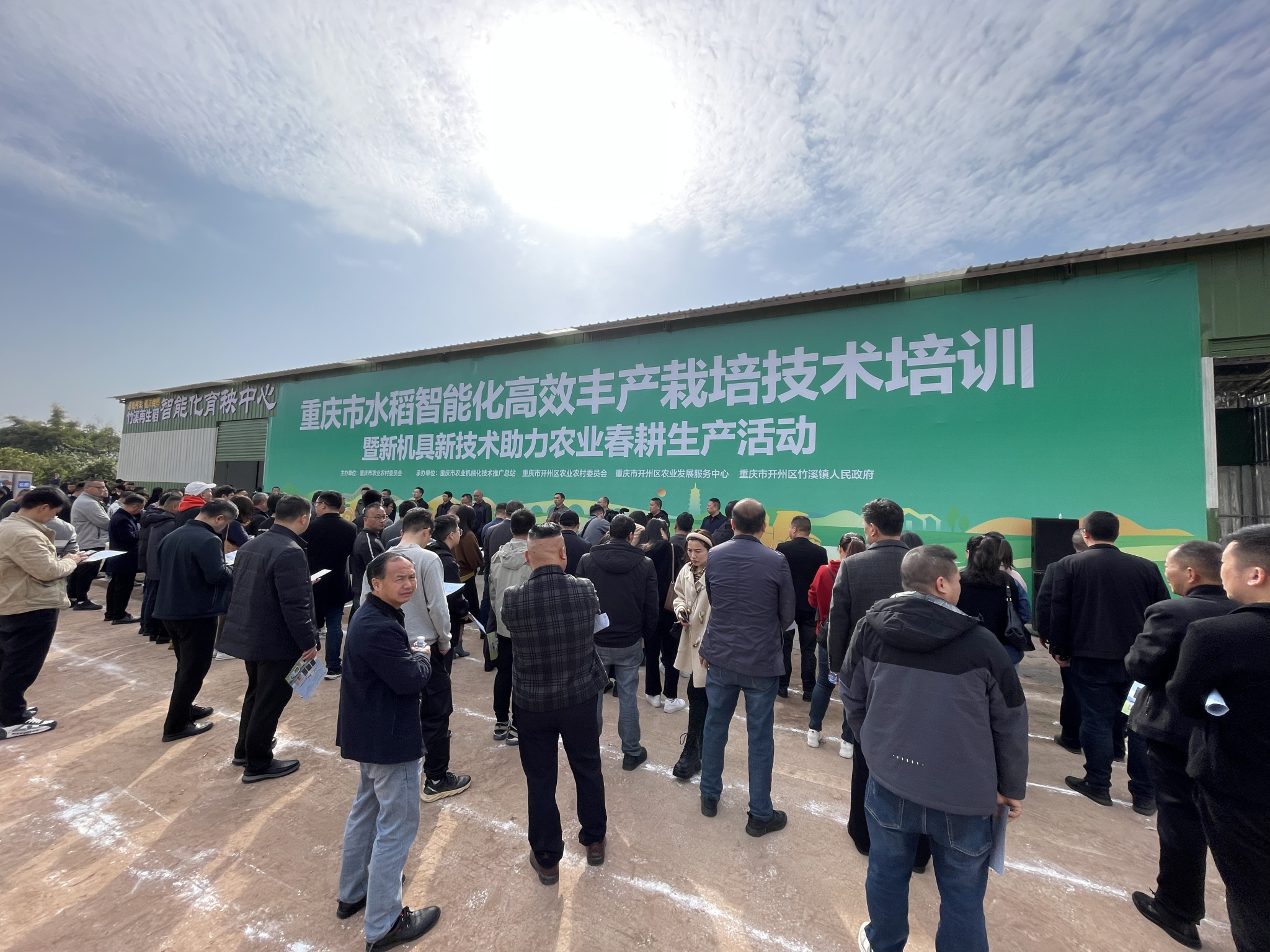 3月20日,由重庆市农业农村委员会主办,重庆市农业机械化技术推广总站、重庆市农业技术推广总站和beat365中文官方网站等联合承办的“水稻智能化高效丰产栽培技术现场会”在重庆市开州区举行。重庆市农业农村委二级巡视员夏伯钦,重庆市开州区人民政府副区长邱文军,重庆市农业农村委农机化处一级调研员邱宁等领导专家以及28个区县农机推广机构负责人及水稻种植业主代表共计150余人参加了现场会。
