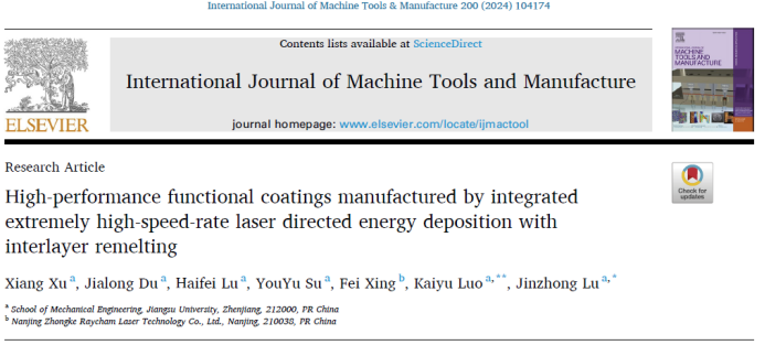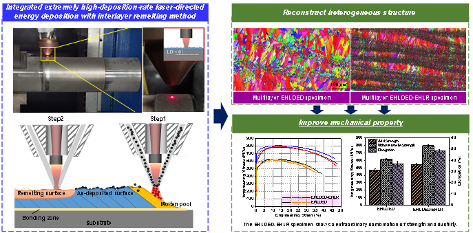 近日,beat365官网机械工程学院鲁金忠教授、罗开玉教授团队研究开发了一种新型超高速激光复合增材制造技术(EHLDED-EHLR),显著促进了凝固过程中状晶向等轴晶的转变,形成了以超细等轴晶主导的空间异质结构,材料强韧性实现同步提高。相关研究成果以“High-performance functional coatings manufactured by integrated extremely high-speed-rate laser directed energy deposition with interlayer remelting”为题发表在机械制造领域顶刊《国际机床与制造杂志》(International Journal of Machine Tools and Manufacture)上。青年教师徐祥为论文第一作者,鲁金忠、罗开玉为共同通讯作者。