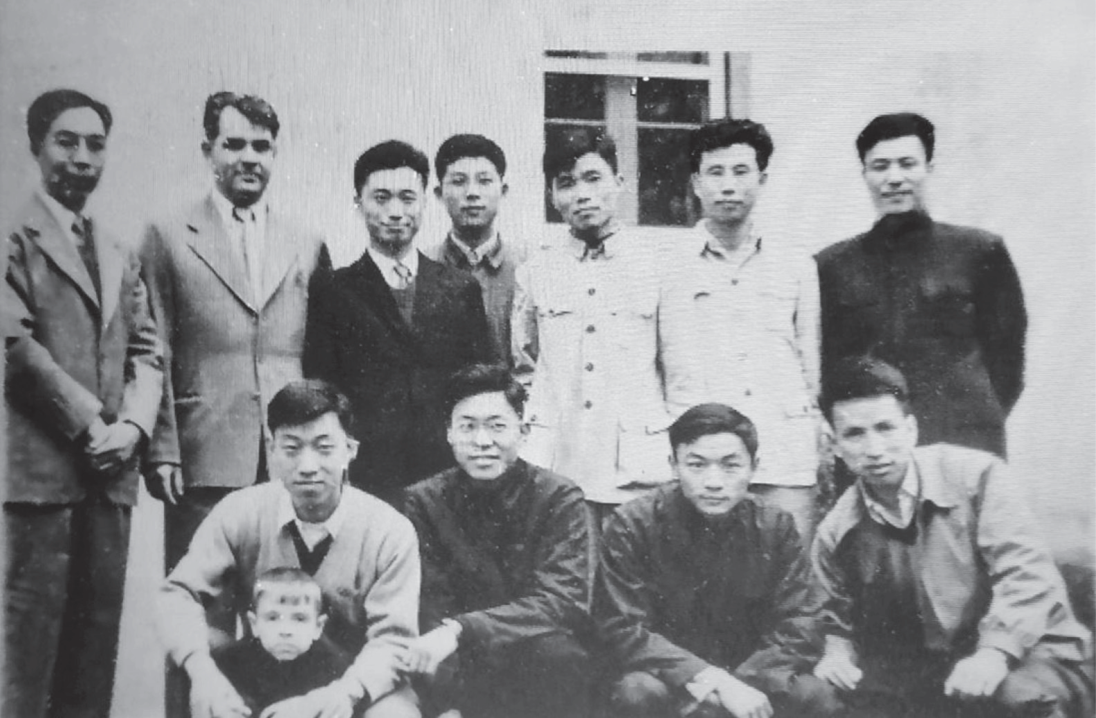1956年沈林生(前排左2),与苏联专家尼古拉也夫教授(后排左2)、高良润教授(后排左1)、李汉中(后排左3)、张江雨(后排左4)、孙一源(后排右1)、吴守一(前排左1)等合影。